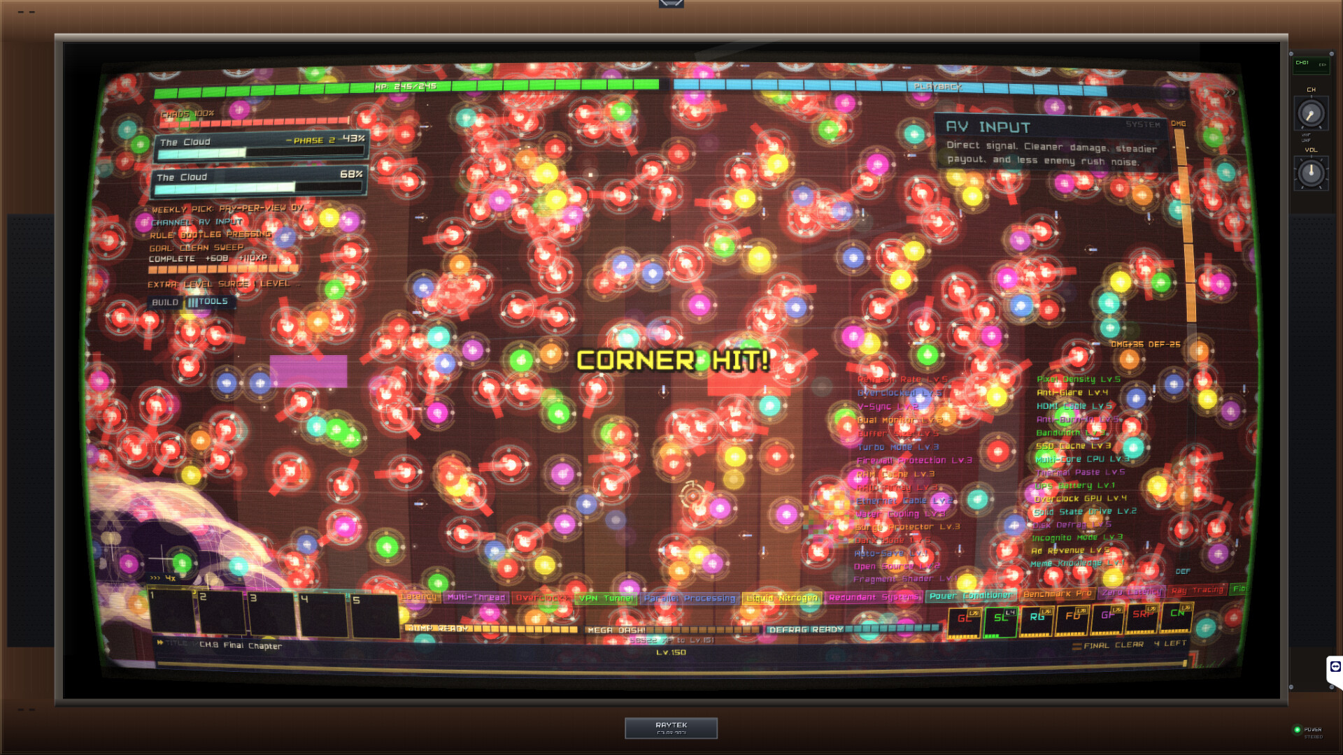 Сопротивление оказывают легионы цифрового мусора, включая назойливые рекламные баннеры, ошибки системы и одиозных боссов вроде Слиппи. Специфическая атмосфера поддерживается внезапными вставками коммерческих пауз и сменой вещательных частот, мгновенно трансформирующими условия текущего забега. Каждая попытка предлагает свежий опыт благодаря обилию случайных факторов и разветвленной системе достижений. Стабильный рост характеристик достигается за счет накопления опыта, позволяющего постепенно открывать новые главы этого безумного противостояния.