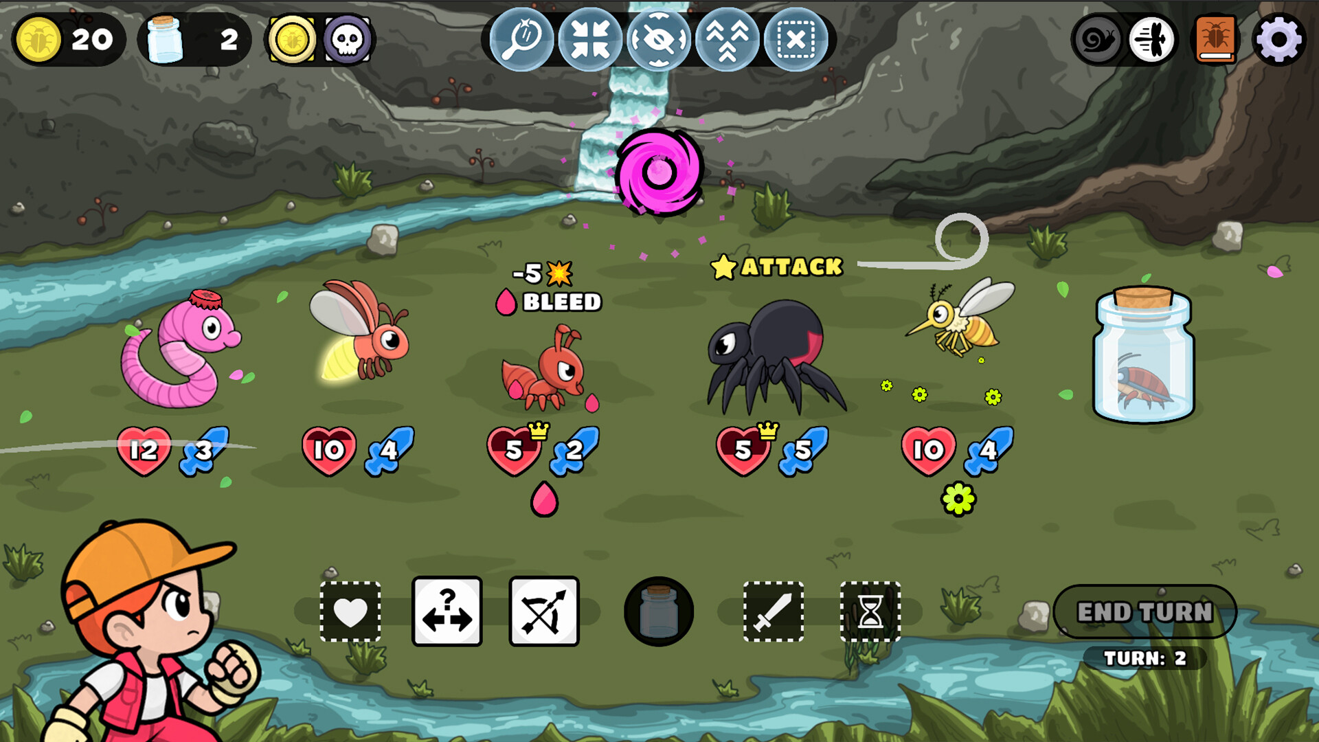 Формирование отряда в Dicey Bugs целиком зависит от существ, завербованных в бою. Плененных жуков можно включить в активный состав или сохранить для будущих попыток, что добавляет геймплею гибкости. Игрок составляет свою группу из этого ростера перед каждым новым походом, попутно кастомизируя стартовый набор дайсов. Прохождение открывает доступ к новым навыкам и сериям атак, а подбор подходящей экипировки для разных бойцов помогает создавать мощные групповые связки.