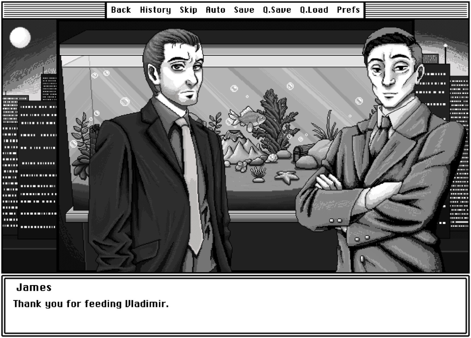 My Bloodsucking 9-to-5 — сатирическое повествование, центральным персонажем которого выступает заурядный офисный служащий среднего возраста по имени Джеймс. Несмотря на сверхъестественную природу вурдалака, протагонист ведет обыденный образ жизни, пока привычный ритм не нарушается дерзкой кражей его обеда. Это происшествие вынуждает героя отвлечься от рутины и приступить к поискам виновного. Проект сочетает комедию и мрачные темы, включая манипуляцию сознанием и насилие. Читателю предстоит погрузиться в историю объемом 25000 слов, ознакомление с которой занимает около 2 часов. Пиксельная графика и оригинальный саундтрек дополняют атмосферу произведения.