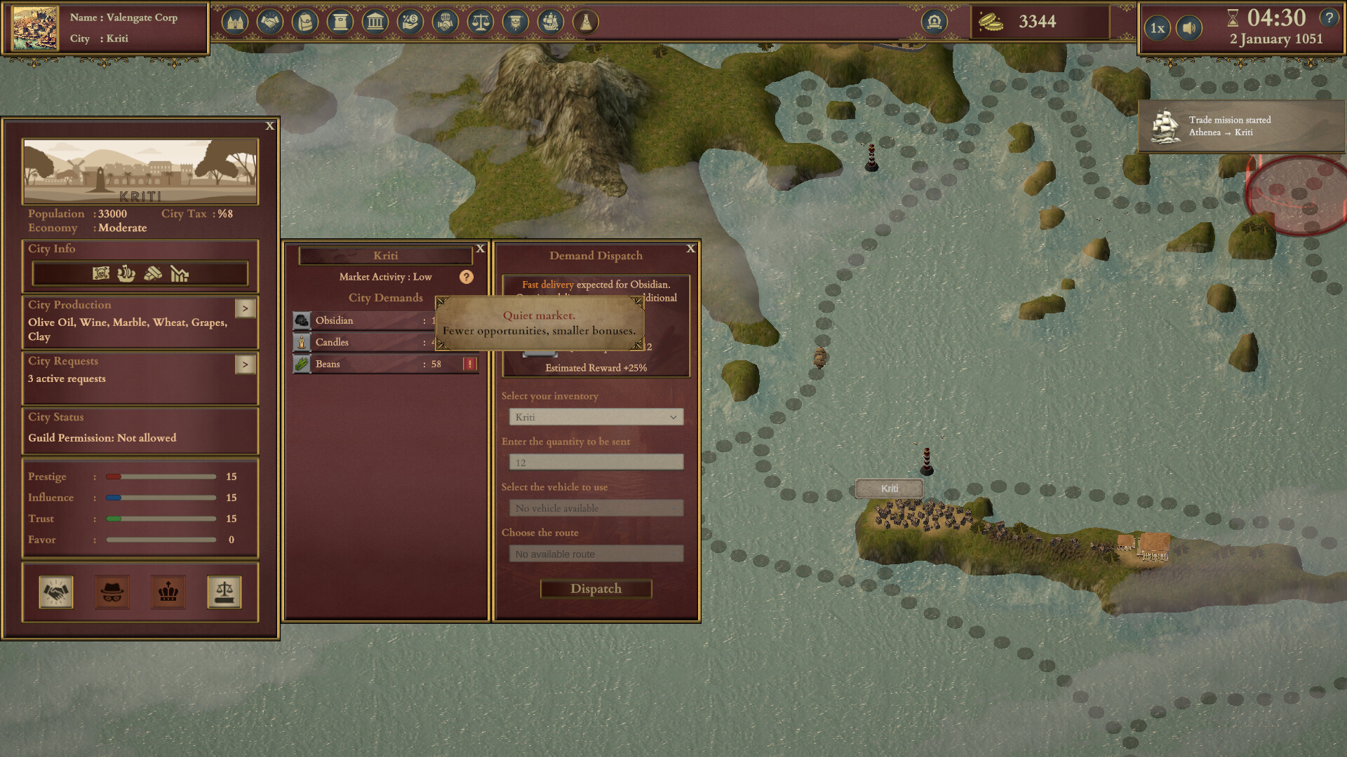 Trade Empire — многогранная экономическая стратегия, где суровые реалии средневекового рынка диктуют свои условия амбициозным негоциантам. Развитие коммерческой иерархии начинается с выбора стартового города и формирования семейной династии с настройкой происхождения наследников. Успех предприятия зависит от умения балансировать между легальными поставками и теневыми сделками в криминальной среде. Основной задачей выступает постепенное вытеснение конкурентов ради тотального контроля над логистическими узлами. Каждый регион обладает уникальными ресурсами, а рыночный ассортимент обновляется 2 раза в месяц, заставляя адаптироваться к запросам населения.