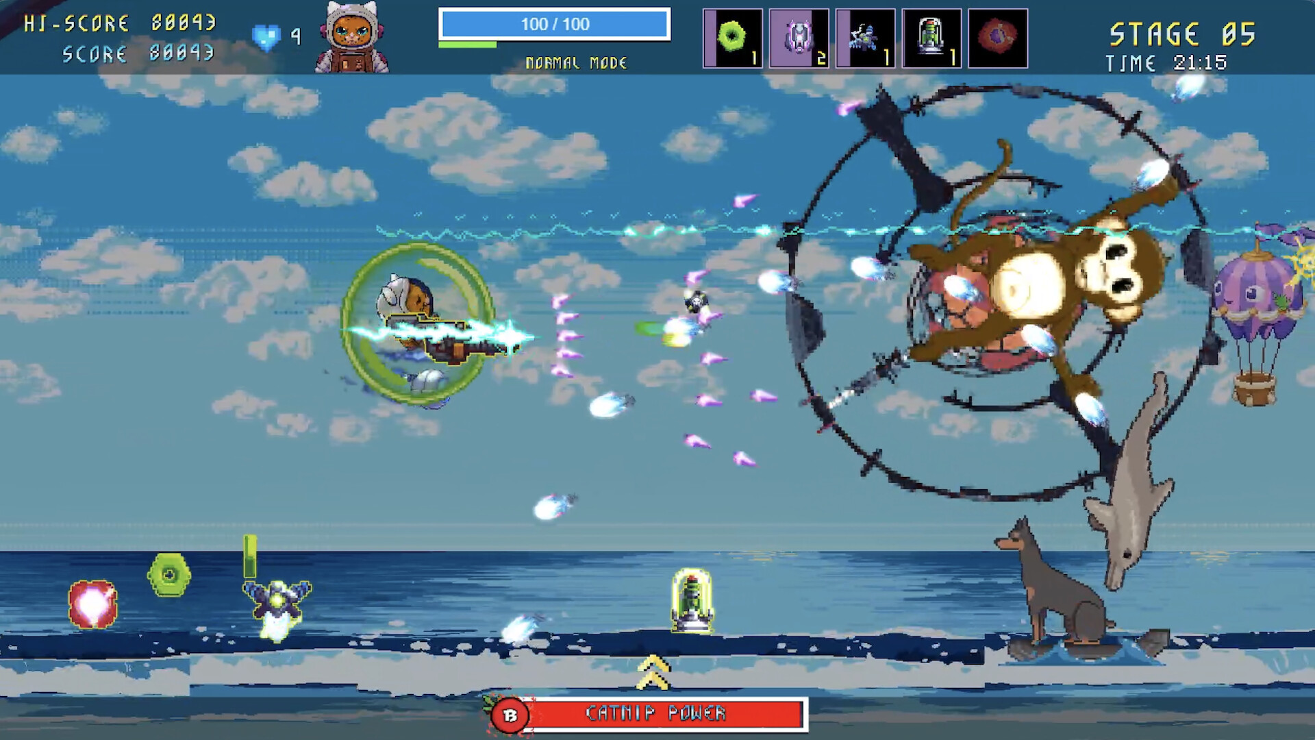 Игровой процесс базируется на филигранном уклонении от снарядов и постепенном наращивании огневой мощи. Совмещение различных типов атак позволяет формировать уникальные конфигурации, способные мгновенно очистить пространство от неприятеля. Специальная механика кошачьей мяты дает возможность применять разрушительный прием Meodoooken, когда ситуация на экране становится критической. Предусмотрены различные форматы прохождения, включая классическую аркаду и локальный кооператив на 2 участников. Высокая плотность вражеского огня и наличие экстремального уровня сложности делают проект серьезным испытанием даже для опытных поклонников жанра.